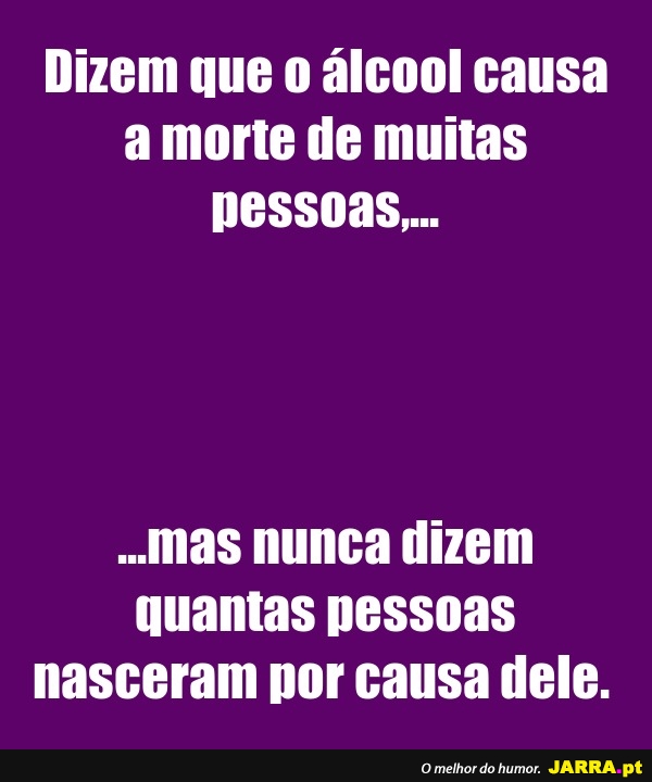 Dizem que o álcool causa a morte de muitas pessoas,......mas nunca dizem quantas pessoas nascer