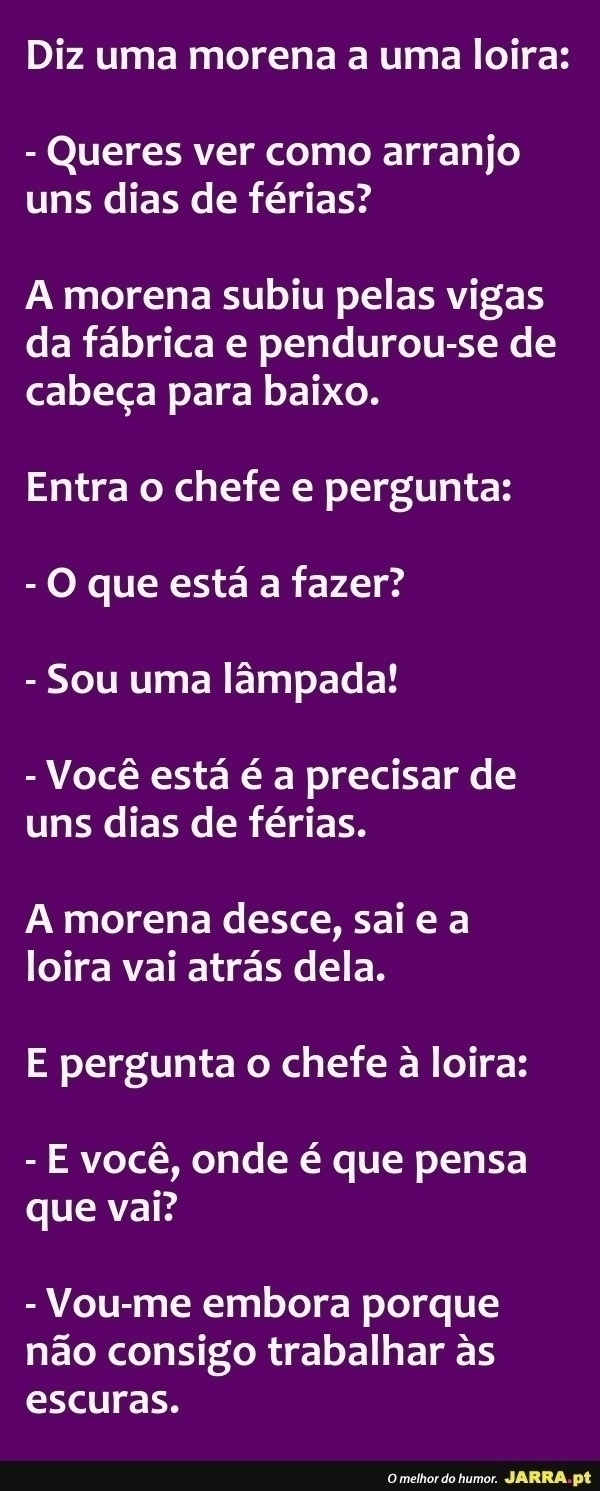 Diz uma morena a uma loira...