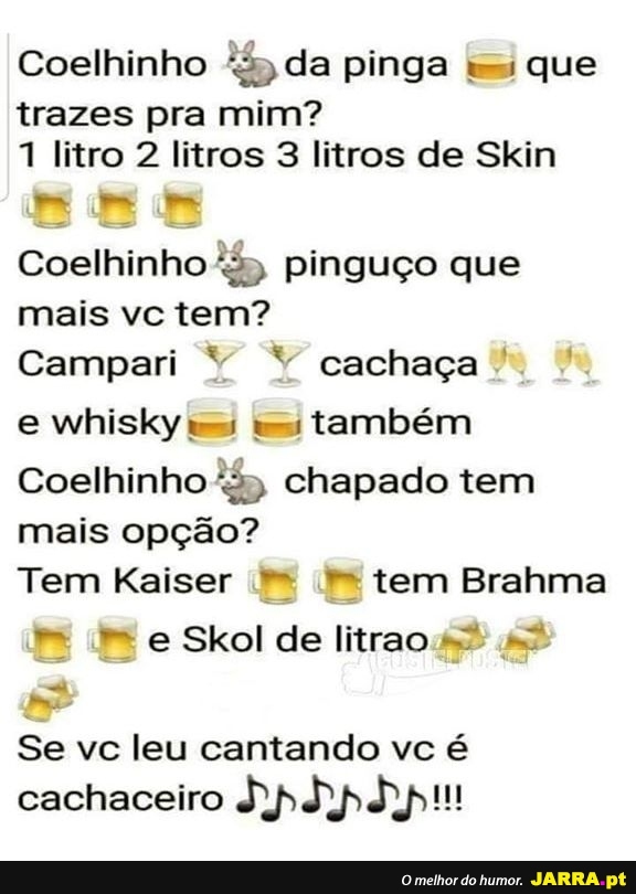 Coelhinho da pinga que trazes pra mim? ..
