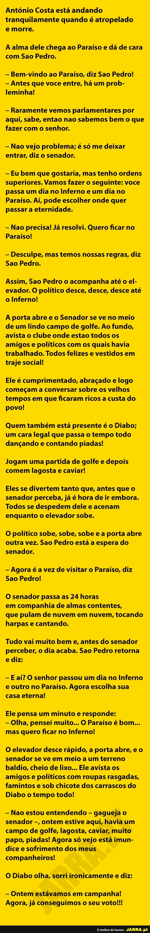 António Costa está andando tranquilamente quando é atropelado e morre.